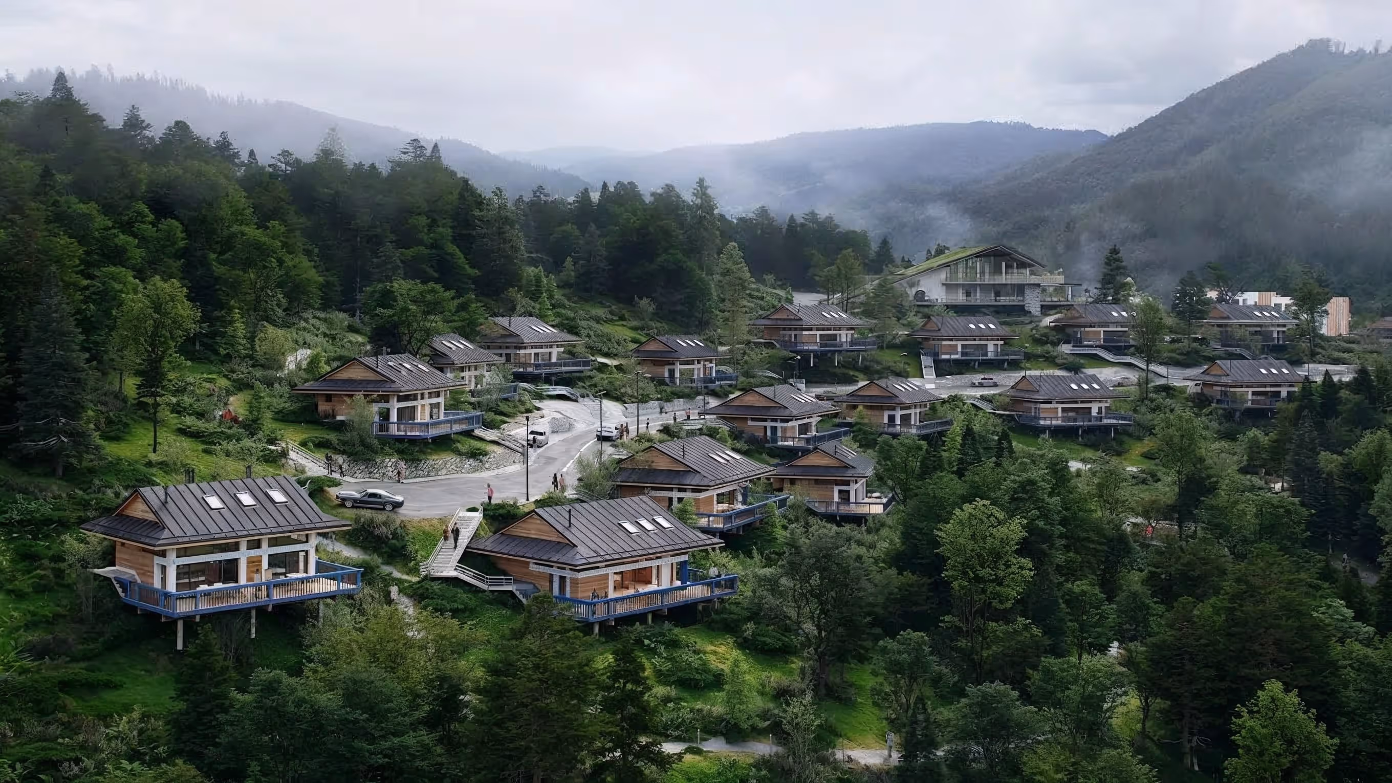 Архітектура та планування, адаптовані до гірського рельєфу. Мінімум втручань.